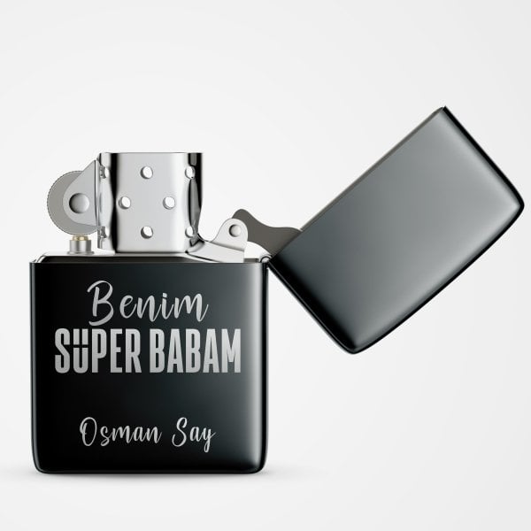 Babalar Günü Baskılı Siyah Metal Çakmak-5
