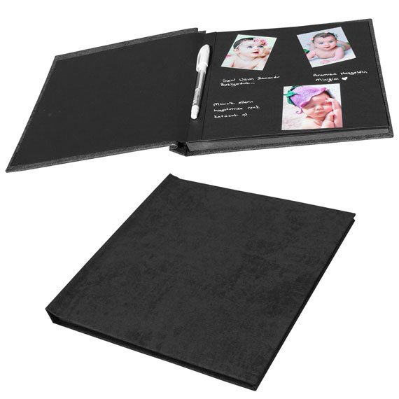 1 adet 20 yapraklı (40 sayfa) siyah anı defteri + 1 adet beyaz jel kalem