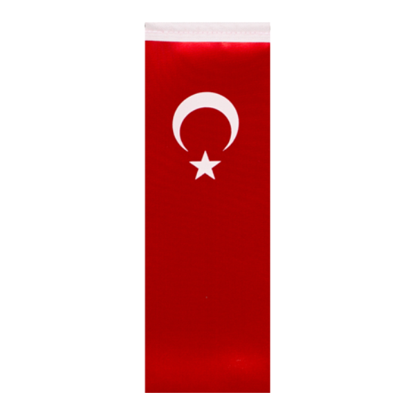 Türk Masa Bayrağı 8,5x25 cm ebatlarında çift kat parlak satenden yapılmıştır.