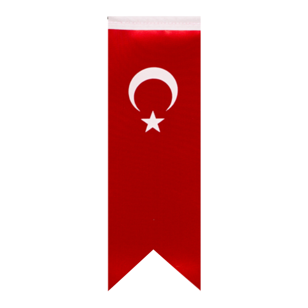 Türk Masa Bayrağı 8,5x25 cm ebatlarında çift kat parlak satenden yapılmıştır.