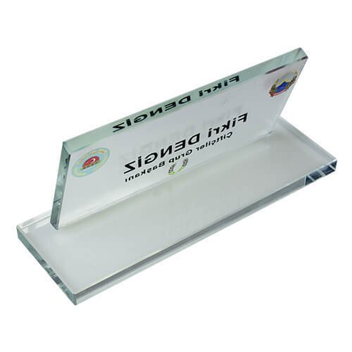 Ürün baskı yapılacak üst parça ve taban olmak üzere 2 parçadan oluşmuştur.Bu 2 parça demonte şeklinde size gelmektedir.Baskı yapılacak üst parçanın bir yüzeyi özel olarak sublimasyon kaplama yapılmıştır. Bu nedenle cam üzerine baskı yapılmakta ve ayrı bir metal parçası gerekmemektedir.Baskı yapılacak parça ebatı 15x7 cm'dir, taban kısmının ebatı 18x6 cm'dir.