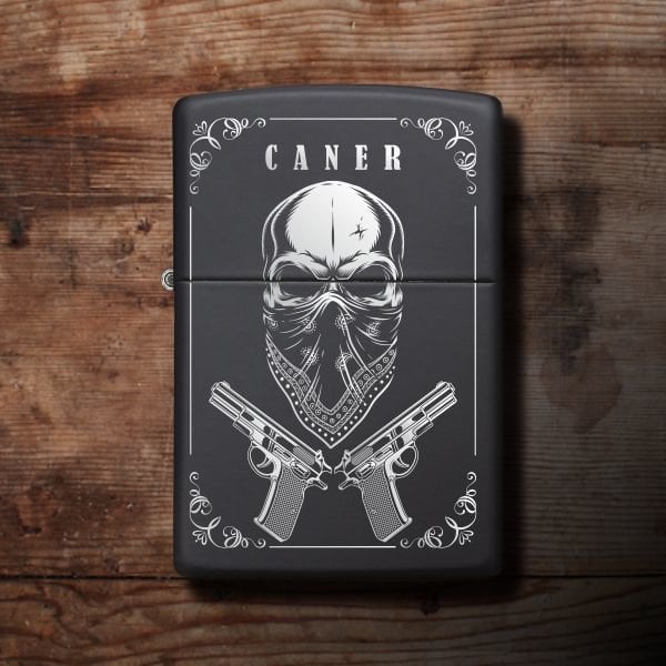 Baskılı Siyah Metal Çakmak