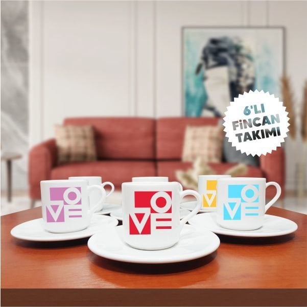 Love Temalı 6'lı Kahve Fincan Seti-009