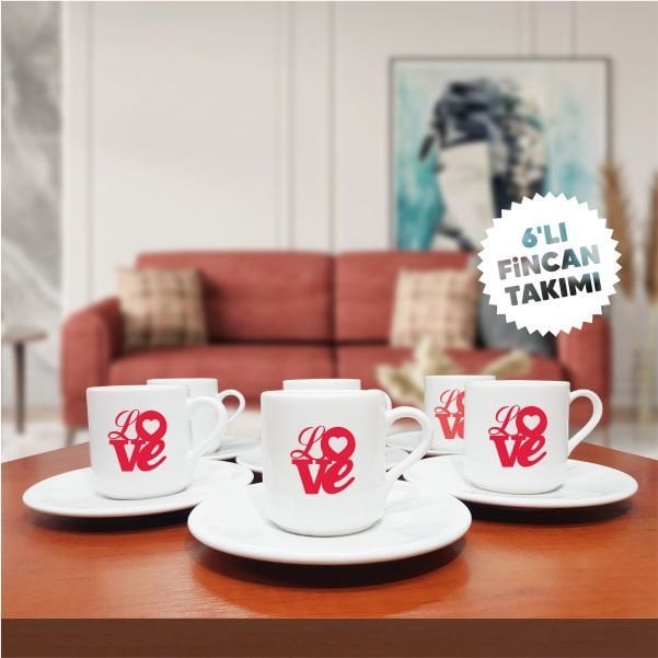 Love Temalı 6'lı Kahve Fincan Seti-010