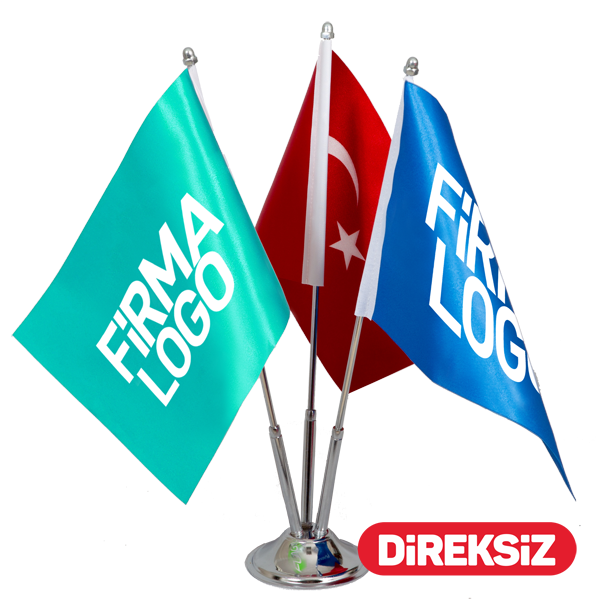 Özel Logolu Masa Bayrağı Üçlü 15x22,5 cm (Direksiz)